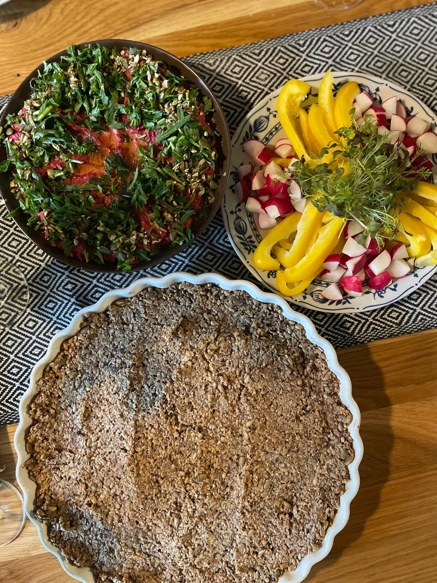 SEMÍNKOVÝ CHLÉB, POMAZÁNKA Z ČERVENÉ ŘEPY. Klíčky, zelenina.