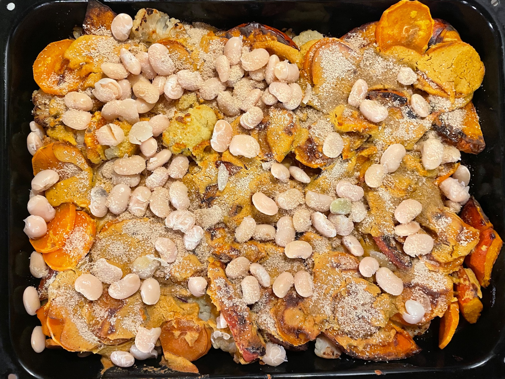 Dýně hokaido je pečená v troubě na 180 °C na kokosovém oleji.